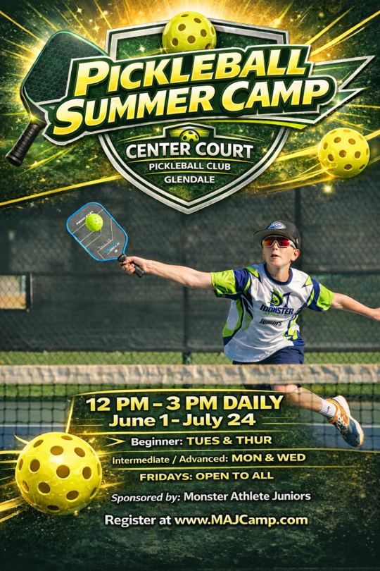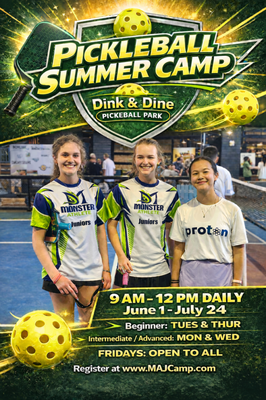 Summer Camp Opportunities: Registration is now open for weekly camps all summer long. Sharpen your skills or maintain your skills. Sessions will be held at Center Court Pickleball Club and Dink & Dine Pickleball Park.