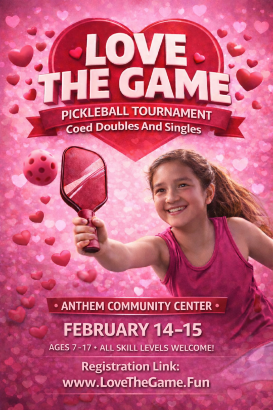 Our first tournament of the Winter/Spring season will be held at the Anthem Community Center courts Saturday and Sunday, February 14-15. The tournament will feature coed doubles and singles events. Events are included for MAJ members but the tournament is also open to all non-members. Cost for non-members is a $50 registration fee and a $25 fee for each event. Events will be structured by age and skill level. We will also find you a partner if you don’t have one.